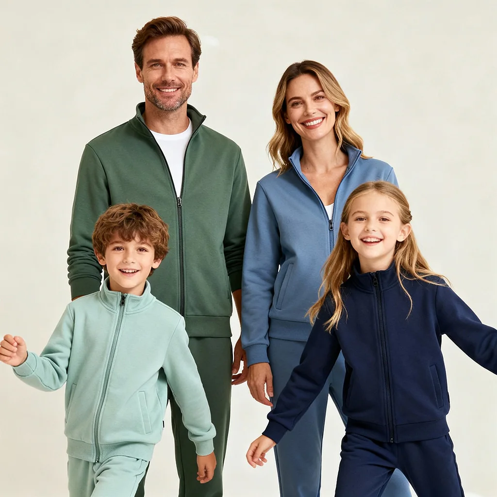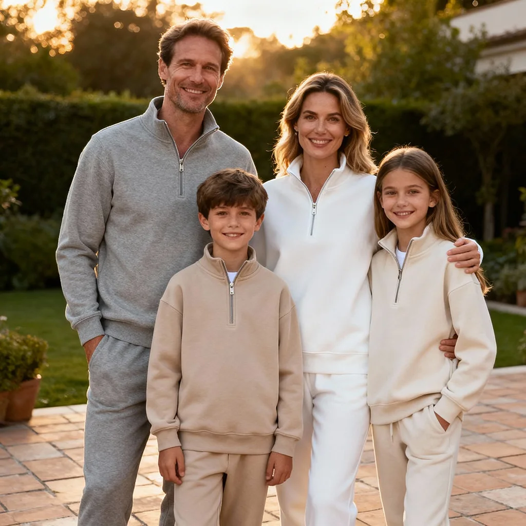 Custom Winter Skin-friendly Fleece Warmer Quater Zip Golf Pullover Sweatshirts with Pants Trousers Sets for Boys Girls Family